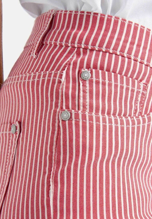 Ankle-length jeans by PETER HAHN SYLVIA fit. With an expanded waist, comfortable tummy section, reduced hip width and extra-slim thighs. Made of striped fabric with an extremely soft feel and comfortable elasticity. Five-pocket style with elasticated waist, decorative pockets in the front and a functional coin pocket. Belt not included.